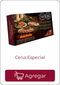 La cena especial contiene 6 porciones de jamón de cerdo ahumado, 2 supremas de pollo rellenas de jamón y queso y 1 rollo de pollo ahumado por 6 porciones, una deliciosa salsa de ciruelas y todo listo para consumir.